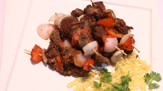 Grind the garlic and onion .now strain with cloth .then in a pot then add fat ,meat ,salt ,black pepper ,onion and garlic water add and leave for whole night .now sewing on skewer fat and boti then fry .after this add 2 tomatoes and onion pieces grill .finally do the coal smoke and serve with pasta .