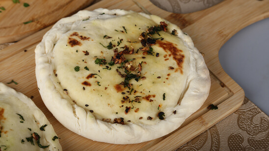 Amirtasri Kulcha are crispy on the outside and soft on the inside. It garlicy and aromatic. Pair it with your favorite desi food and have a blast!