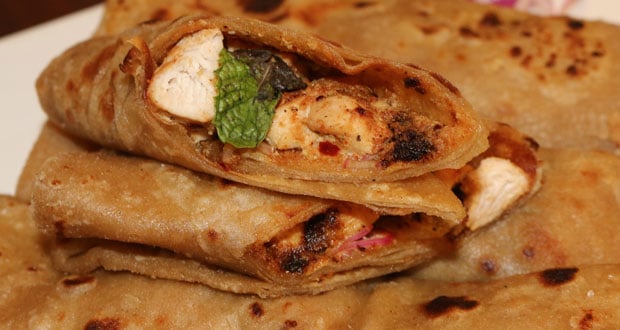 - Fill the chicken n the parathas and add onion salad on it.Roll them and serve.
