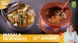 Masala Mornings – 23 Jan 2023 – Recipes: Mutton Matka Biryani & Green Karahi – Chef Shireen Anwar