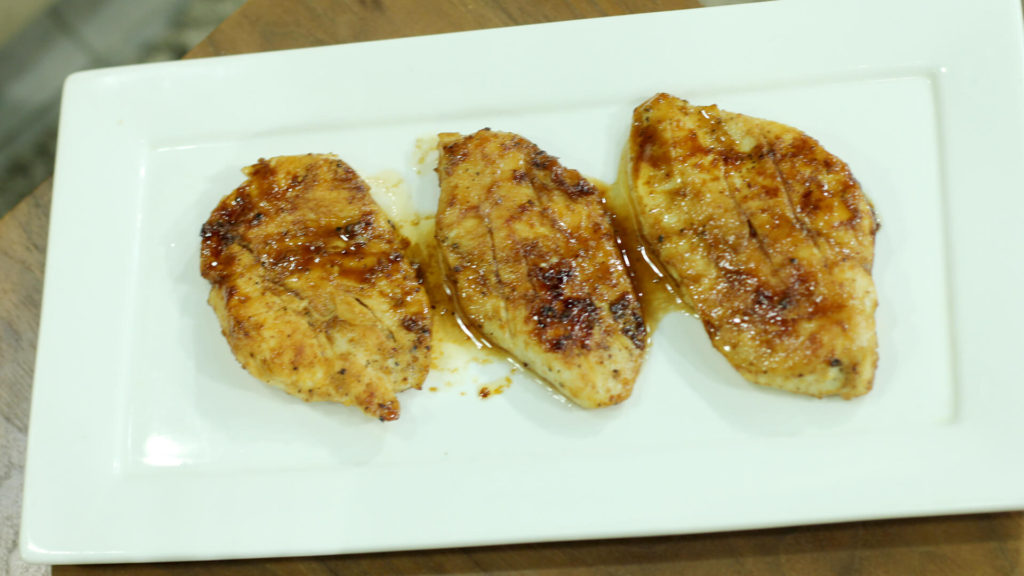 - Once hot, add the chicken fillets one beside the other. Grill on high heat for around 3 mins.