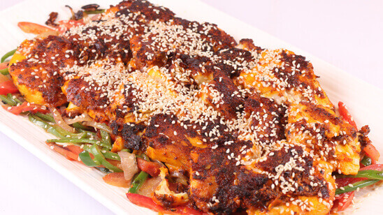 4- Now cover the marinated fish with sesame and fry until golden brown.