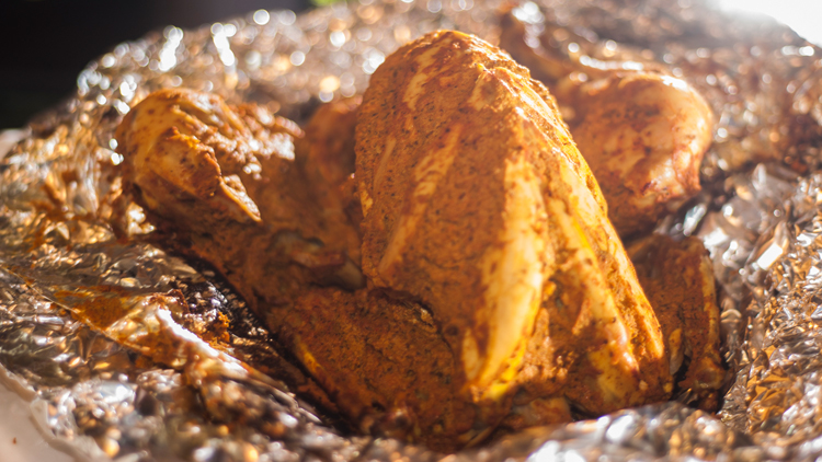 - Now wrap the marinated chicken into large aluminum foil.