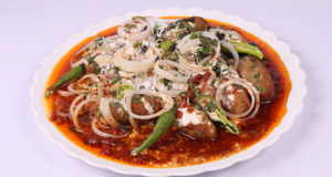 boil beef with 2-1/2 cup of water with salt and all spice. Heat oil add chopped onion fry well. Add tender beef then add cumin and ginger garlic paste cook for 2 minute. Add ½ cup of potatoes mix well cover and cook for few minute. Peel of tomatoes skin and mashed well. Add all spices, salt, red chili powder, crushed red chili , turmeric, coriander, fenugreek, karahi masala and green chilies cook for 4 to 6 minute on high flame. Beef curry is ready. In bowl add ½ kg yogurt, chopped coriander, mint and onion ring mix well and keep aside. In serving dish add half beef curry then add yogurt mixture. Again pour beef curry then add yogurt mixture. Give a smoke of coal for 5 minute.