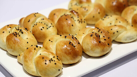 Sb cheezo ko 1sth knead krna Hy water As required use kry gy kneading k bad dino Roll bnye gy or egg wash KR k bake kry gy 180c° py 20_25 minutes