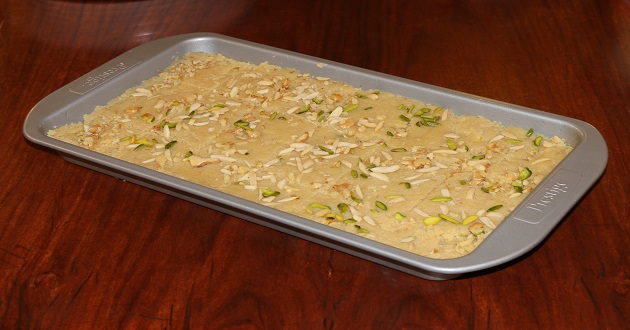 • In the end, Sprinkle almonds, pistachios let it cool and cut into pieces serve it.
