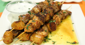 - Now marinate liver, heart , sausages and beef in the mixture and stick it on skewers , now grill it on grill pan with oil.