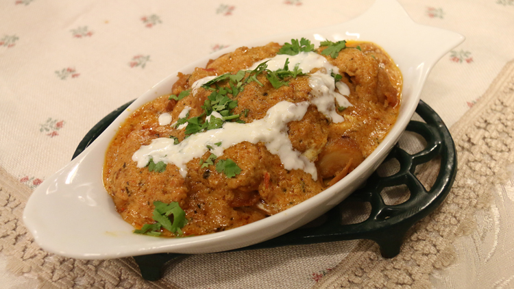 - Then add cream, cashew powder, dried fenugreek and all spice powder and cook for 5 minutes.