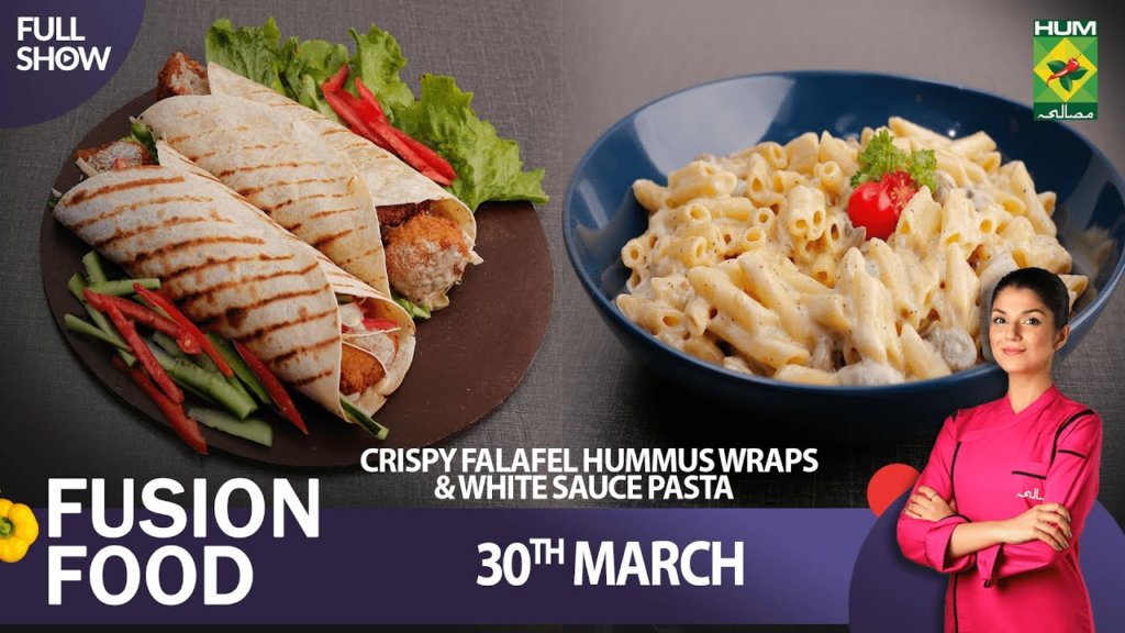 Fusion Food – 30 March 2023 – Crispy falafel hummus wraps & White sauce pasta – Chef Mahnoor Malik Recipe in Urdu and English