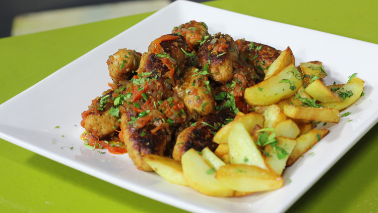 - Now in a pan heat oil and fry long kabab and fry potatoes and fry till than golden brown