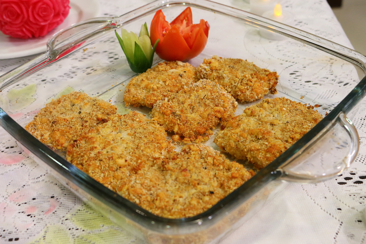 - In another bowl, add cream and egg and beat together, spread flour in a dish, grease oven proof dish with oil, coat fish in flour then in egg and cream then in bread crumbs put in a baking dish bake for 20 mins until golden.