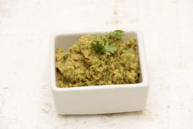 - Cut the raw mango in small cubes or grate it.combine all ingredients and grind well
