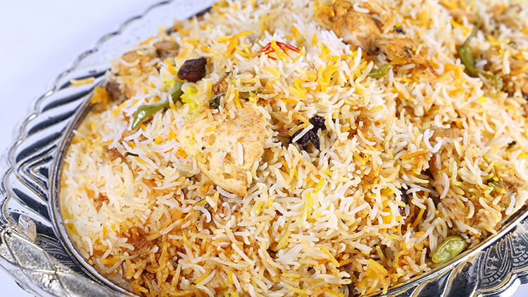 Chicken marinated with different ingredients like Nutmeg ,mace, Lemon juice, grinded all spices, Red chili powder and more. Rice added to this chicken on dum makes this dish irresistible to eat.