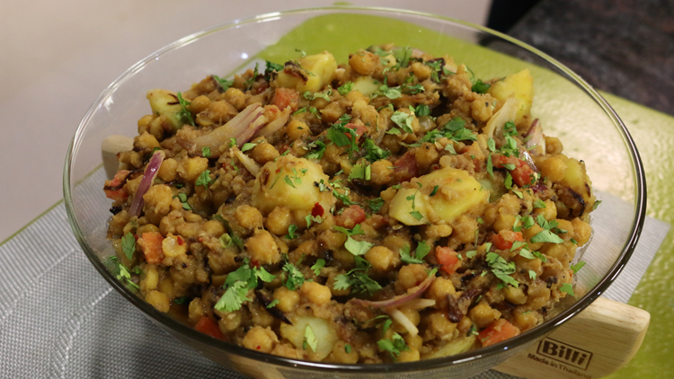 - Now mix boil chickpeas and potatoes.