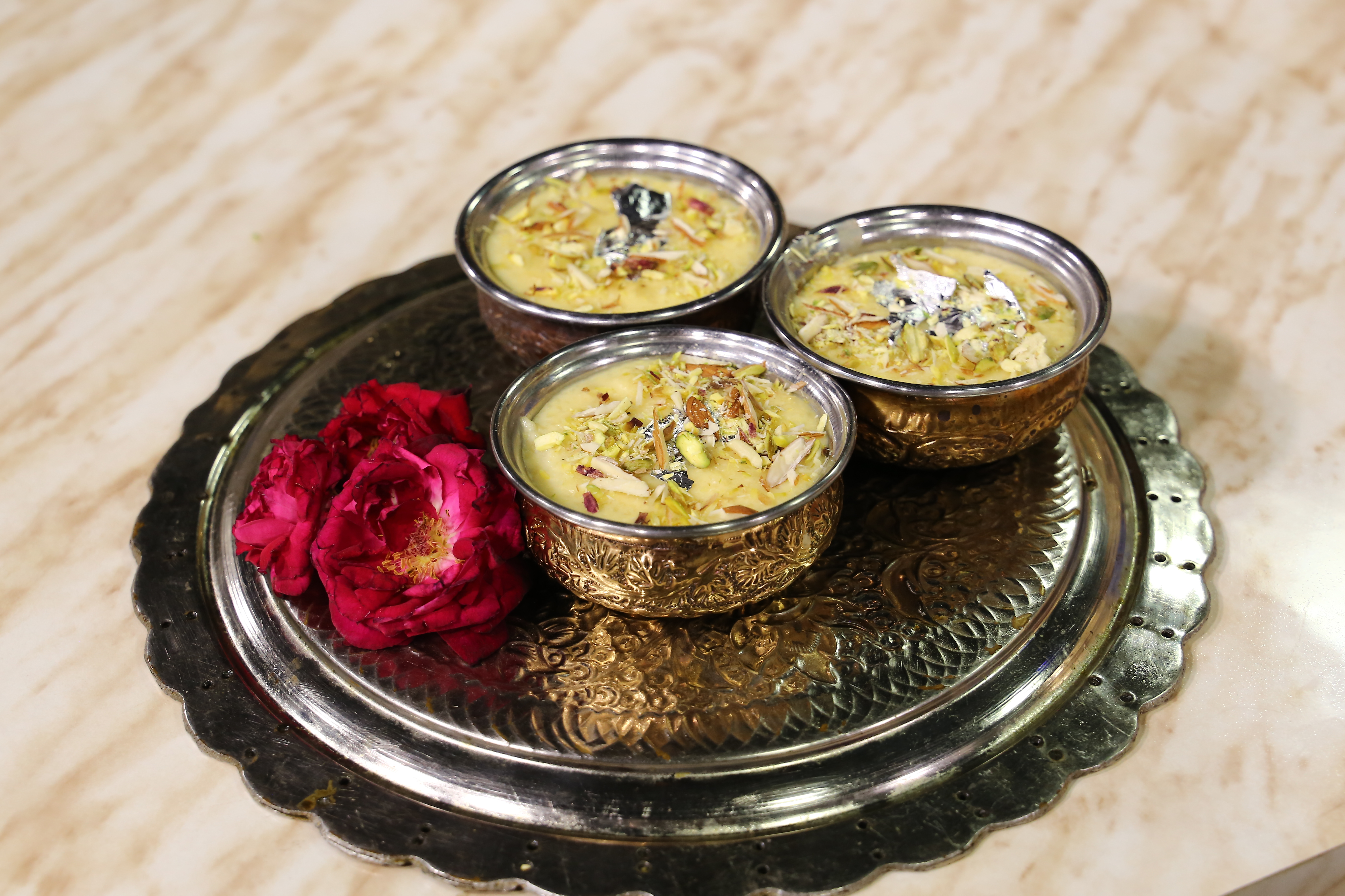 - Lastly set the kheer in a dish and garnish it with chopped almonds and pistachios