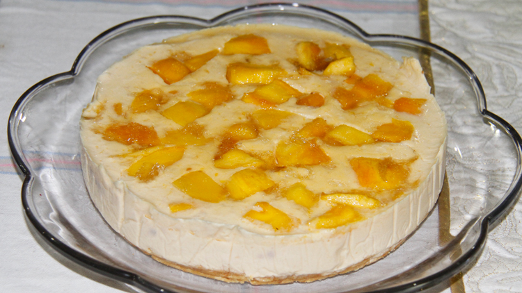 - Add 2 cups of mango (cubes) mix it well take it out the cake mold