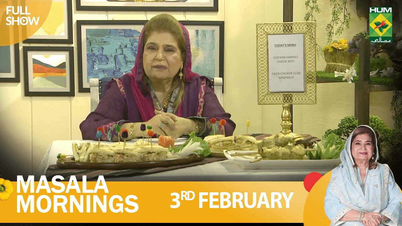 Masala Mornings – 03 Feb 2023 – Recipes: Chicken Cheese Boti & Club Sandwich – Shireen Anwar in Urdu and English