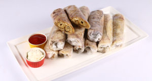 - Take mince chicken mixture in your hand, flatten very thinly, fill in vegetable mixture, made into oblong shape, dip in beaten egg, roll in bread crumbs.