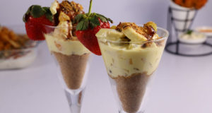 This heavenly combination of bananas, grapes, condensed milk layered with cream is just mouth-watering! This recipe is even better than what it looks. Give this a try.