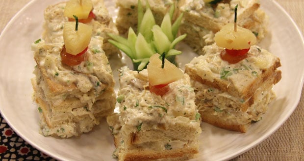 - Pile up on bread slices.