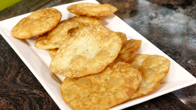 - Heat oil in a wok and deep fry the disc for 5 to 6 mints.