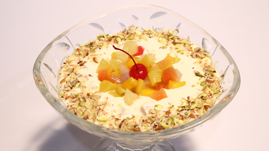 - Add peach and seasonal fruit mix well. Refrigerate for 2-3 hours