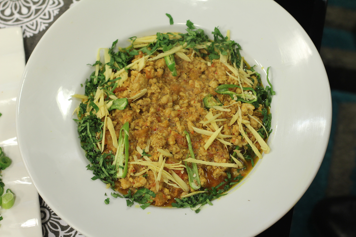 - Add green chilies, lemon juice, and julienned ginger. Leave it to simmer for 5 minutes