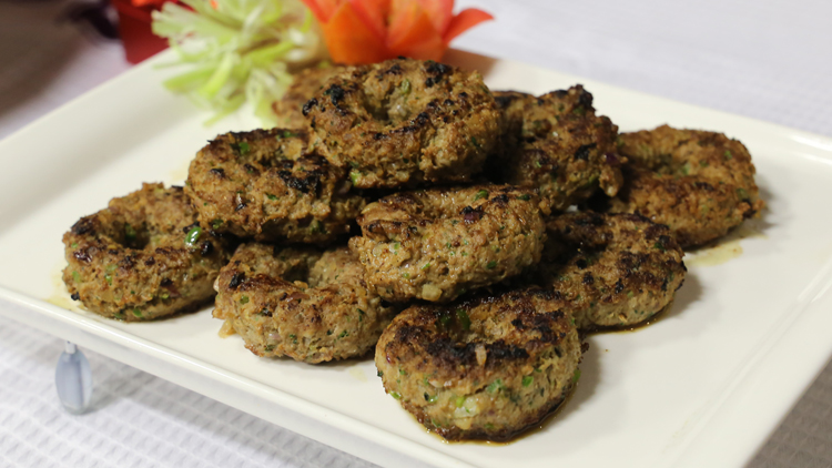 - Put all the ingredients in chopper and grind into a smooth paste, make into round kebabs.