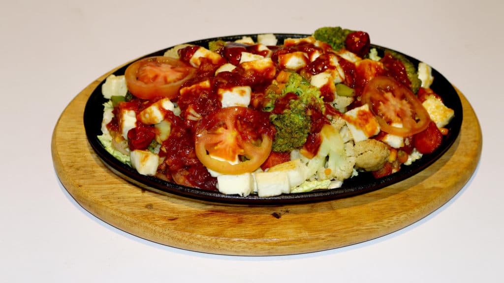 This Sizzling Vegetable & Paneer Platter is a fantastic blend of vegetables of paneer. Its best served in a hot plate to add the sizzle and fanciness. Try it once because after that there will be no stopping.