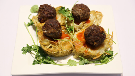 Spaghetti Nests with Meatballs Recipe | Dawat