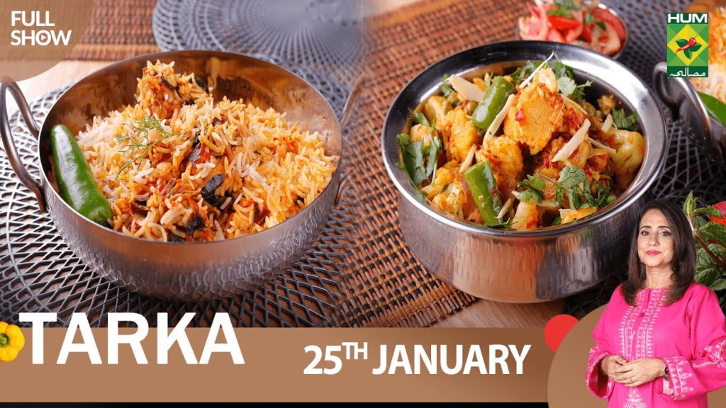 Tarka – 25 Jan 2023 – Recipes: Gobi Matter Ki Sabzi & Tandoori Chicken Pulao – Chef Rida Aftab in Urdu and English
