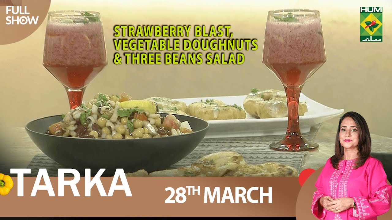 Tarka Recipe | 28 March 2023 | Strawberry Blast, Vegetable Doughnuts & Three Beans Salad | Chef Rida Aftab