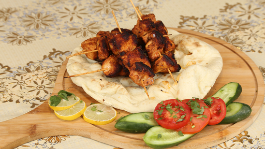 Now take large pan or grill pan pour 1 tbsp oil and fry the chicken skewers on it until golden and cooked completely. Enjoy with Naan and bread